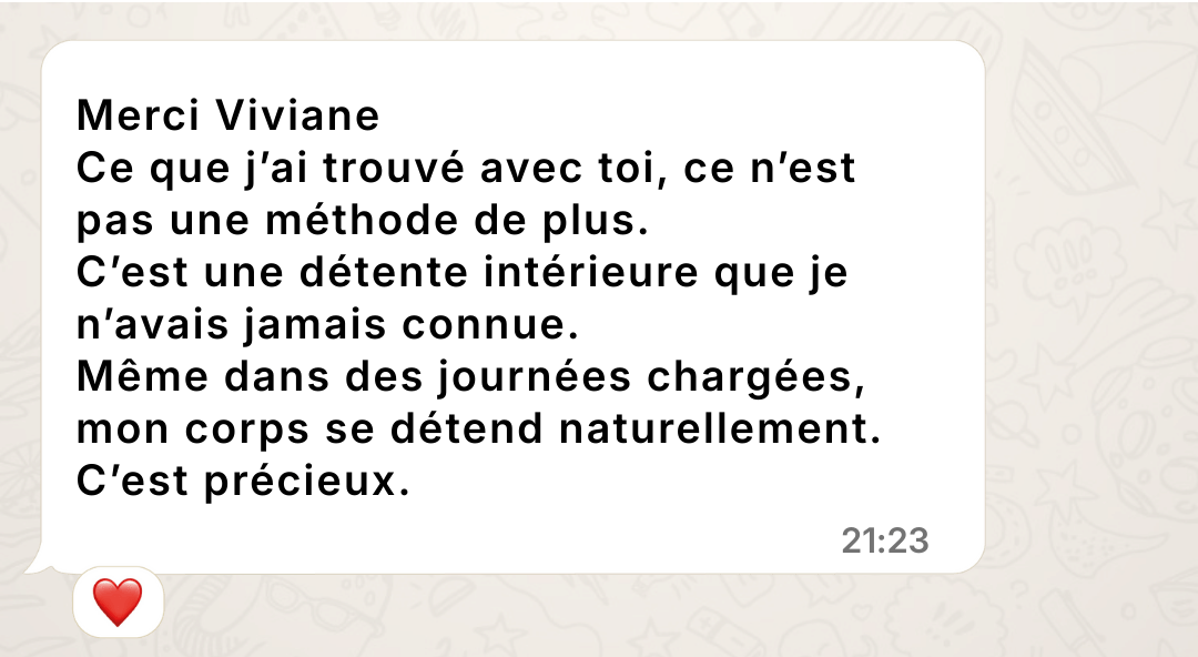 Peu à peu, j'ai compris que chaque tension, chaque blocage, chaque émotion n'était pas un problème à fuir... mais un signal pour revenir à soi. Un appel intérieur.